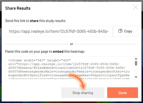 To stop sharing your study results: