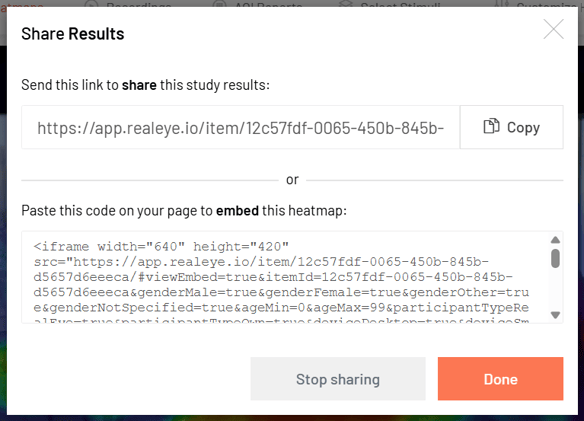With an active License, you have full access to your Analytics Dashboard. You can also share the results with anyone you choose - people with the URL you provide can view the heatmaps with AOI metrics and recordings.