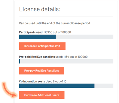 By default, each RealEye License includes up to 3 team collaborators. If your team requires more members, additional seats can be purchased at any time for $30/month per collaborator.